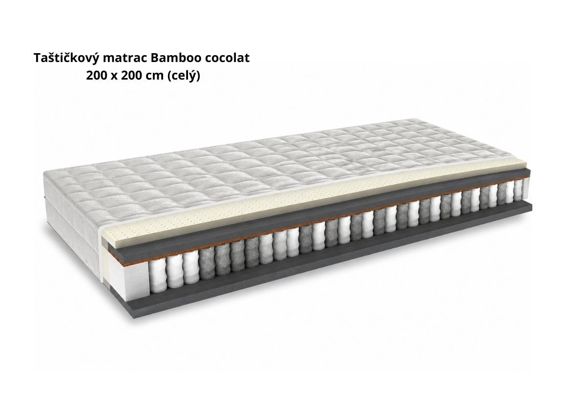 Matrac BAMBO COCOLAT patrí medzi prémiové taštičkové matrace navrhnuté pre zákazníkov, ktorí hľadajú pevnejší matrac s kvalitnou ortopedickou oporou chrbtice. Kombinácia 7-zónového pružinového jadra, prírodného kokosového vlákna, latexovej peny PREMIUM a priedušnej HR peny OxyCell vytvára ideálnu rovnováhu medzi stabilitou a komfortom.