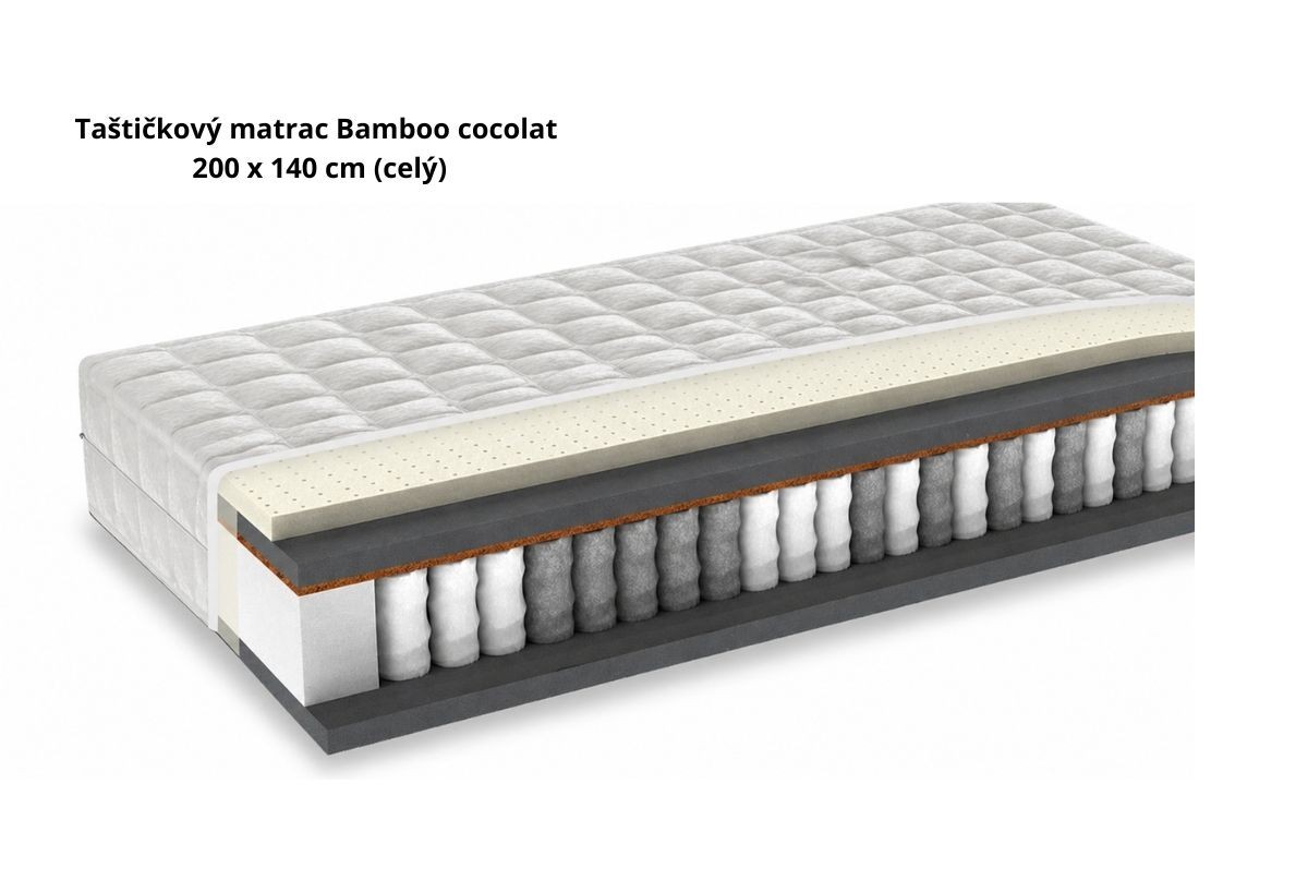 Matrac BAMBO COCOLAT patrí medzi prémiové taštičkové matrace navrhnuté pre zákazníkov, ktorí hľadajú pevnejší matrac s kvalitnou ortopedickou oporou chrbtice. Kombinácia 7-zónového pružinového jadra, prírodného kokosového vlákna, latexovej peny PREMIUM a priedušnej HR peny OxyCell vytvára ideálnu rovnováhu medzi stabilitou a komfortom.