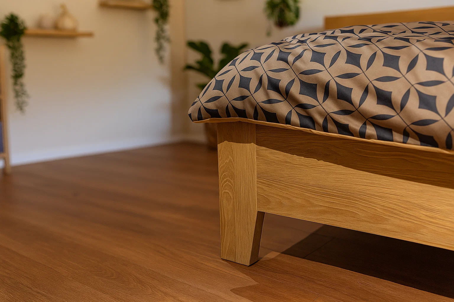 Jedným z dizajnových prvkov postele BRITA sú elegantne zošikmené nožičky, ktoré dodávajú posteli ľahkosť a zároveň výnimočný vzhľad. Tento detail robí z BRITY nielen funkčný kus nábytku, ale aj štýlový doplnok každej modernej aj klasickej spálne.
