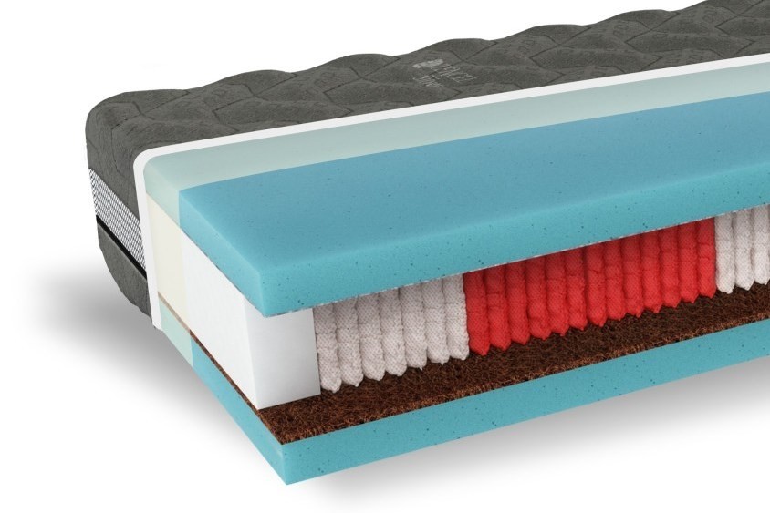 Watergel - hustota 60 kg/m3 LISOVANÁ BAVLNA – CHRÁNIČ PRUŽINY PUR BOČNÍKY - hustota 35 kg/m³ PRUŽINA SUPER MICROPOCKET S2000 7FYZIO - 1000 pružiniek na m² FLEXIKOKOS - hustota 80 kg/m³ Pena SENSIO, KOMFORTNÁ PENA, hustota 40 kg/m³ Watergel - hustota 60 kg/m³ ELASTICKÁ TEXTÍLIA NA OCHRANU JADRA SNÍMATEĽNÝ A PRACÍ POŤAH ERBE