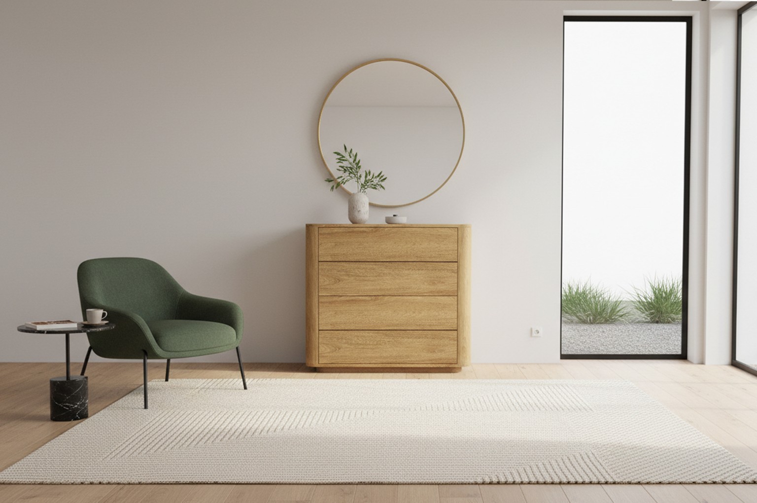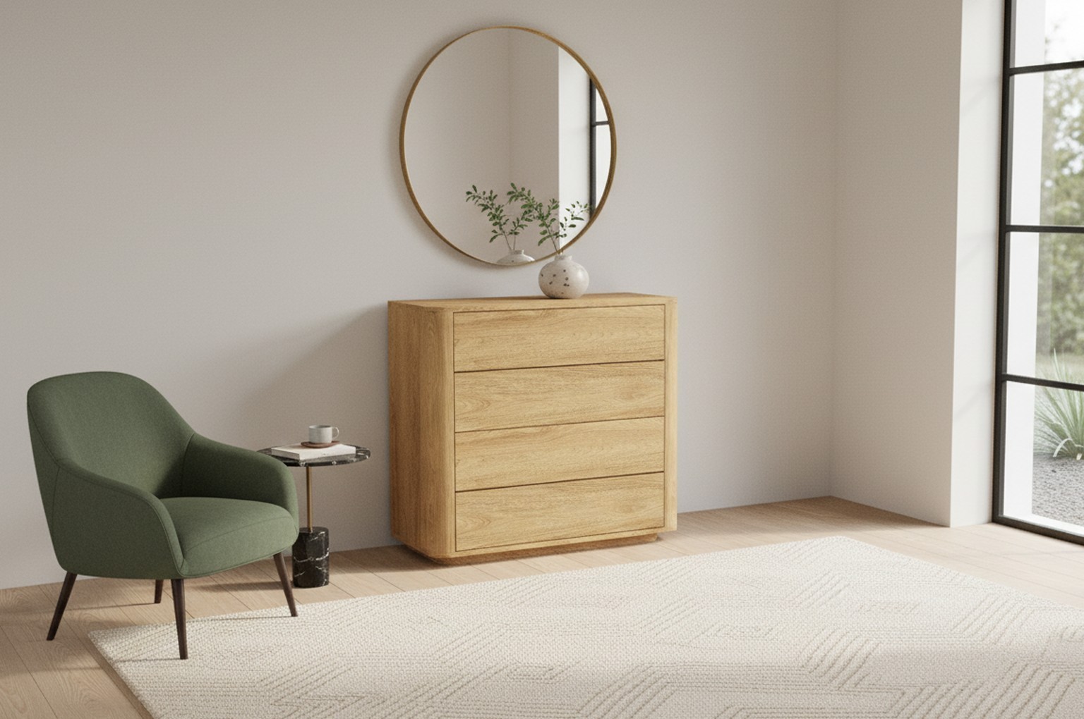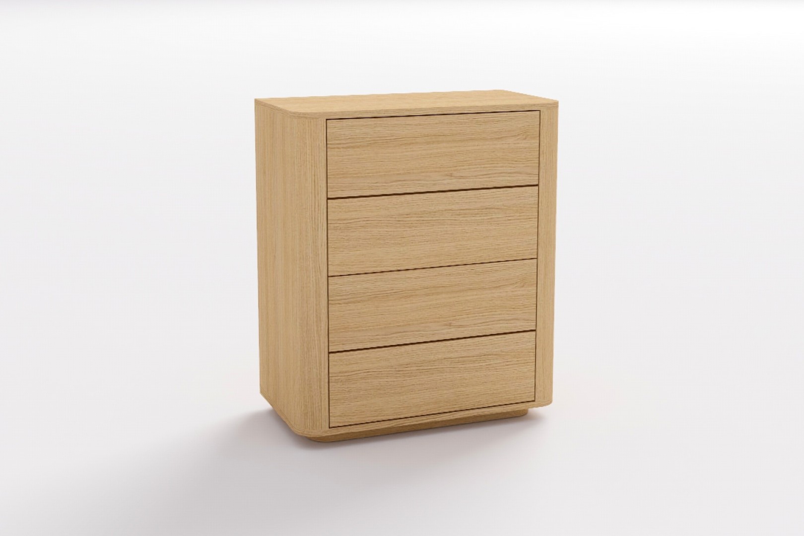 Komoda so zaoblenými rohmi a štyrmi hlbokými zásuvkami ponúka praktický úložný priestor. Vďaka push systému sa zásuvky otvárajú ľahko a bez úchytiek. Skvele sa hodí do moderných aj minimalistických interiérov.