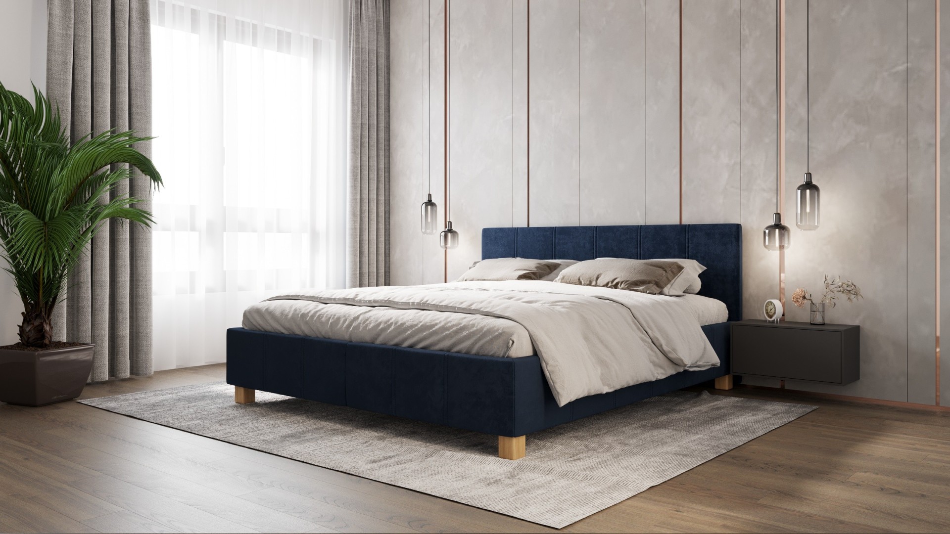 Posteľ sa vyrába na mieru – vybrať si môžete rozmery, farbu poťahu, typ nožičiek aj rošt podľa vlastných preferencií.