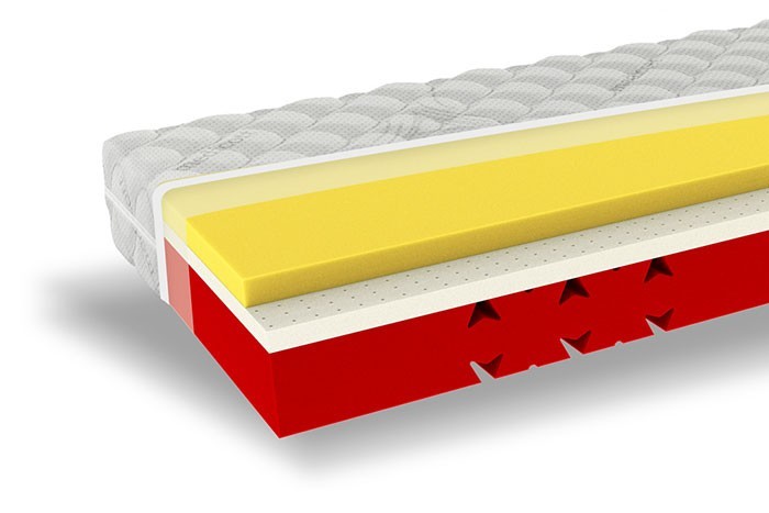 Ortopedický matrac s pamäťovou penou MEMORY, latexovou penou PREMIUM a nosným jadrom z hybridnej peny RED CORE HYBRID so 7 anatomickými zónami. Ideálna voľba pre tých, ktorí hľadajú dokonalú oporu tela, úľavu pre kĺby a svaly a stredne tvrdý pocit spánku. V oblasti ramien a kolien je matrac vďaka zónovému jadru mäkší, aby vaše kĺby mohli dokonale relaxovať bez nepríjemného protitlaku