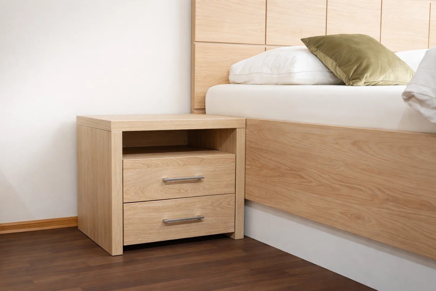 • Nočný stolík vysoký 45 cm, s 2 zásuvkami, ktorý sa zíde v každej spálni