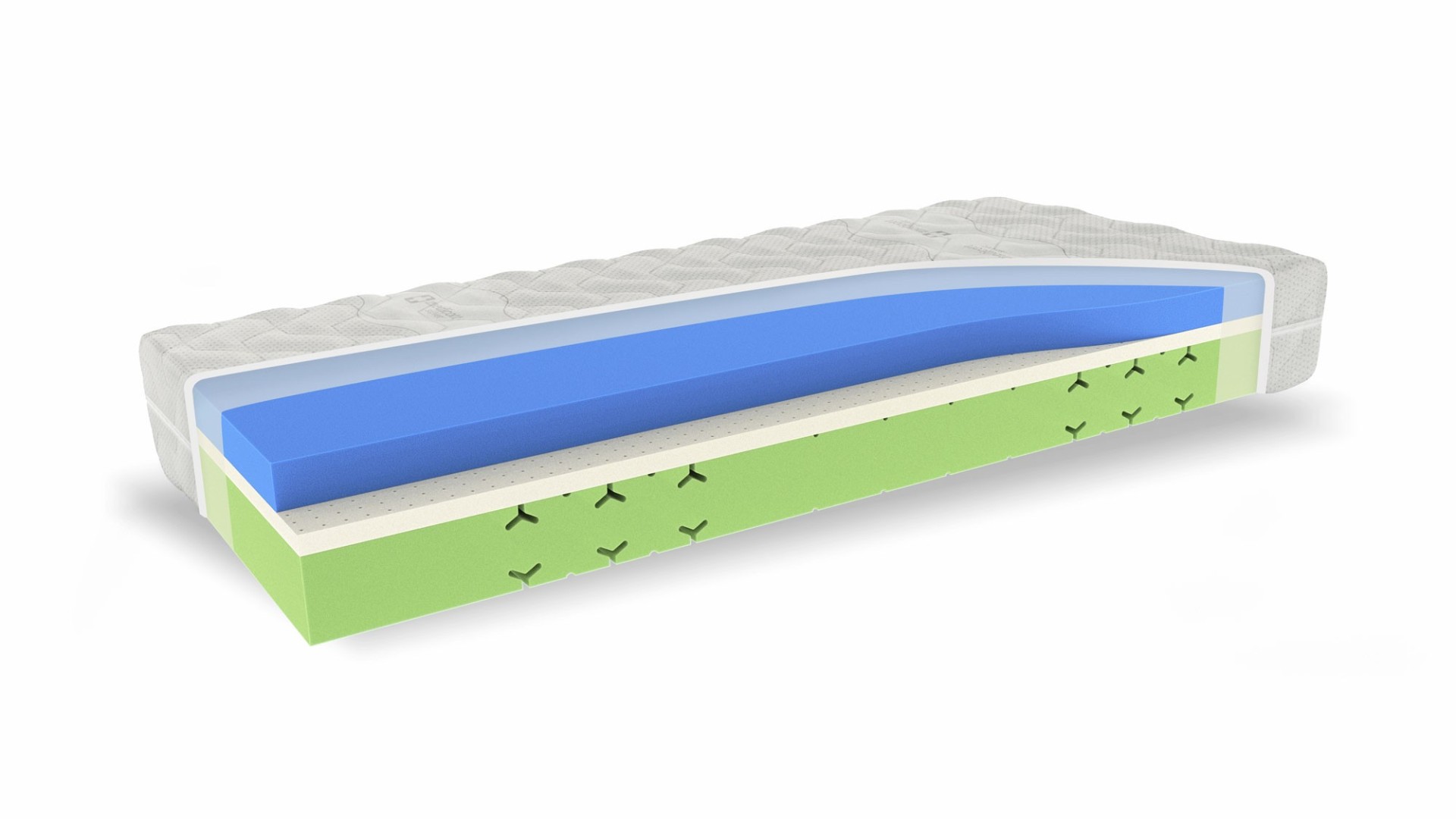 BIO pamäťová pena COOL MEMORY LATEXOVÁ PENA PREMIUM - hustota 70 kg/m³ Pena SENSIO, KOMFORTNÁ PENA, hustota 40 kg/m³ ELASTICKÁ TEXTÍLIA NA OCHRANU JADRA SNÍMATEĽNÝ A PRACÍ POŤAH
